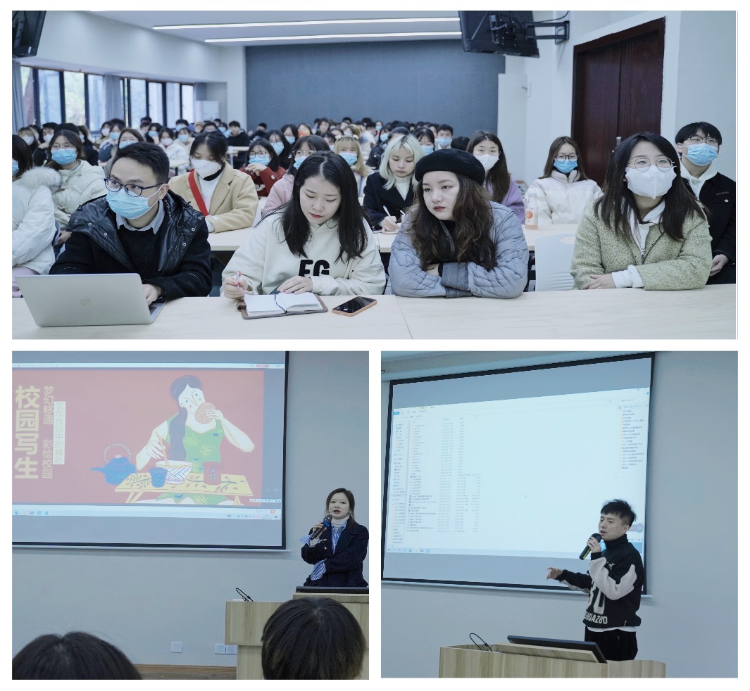 经过动员大会的召开,同学们满怀着激动的心情准备迎接此次写生课程的到来,中期, 2020级动画专业全体师生展开了以“梦幻移通,彩绘校园”为主题的写生讲座,王芳老师强调在绘制美景的过程中,重点突出写生主题——梦幻移通,绘制的过程要将看到的实,感受到的虚,做到虚实结合的艺术创作。写生不光是绘制美景,同时也应该响应时代科技的变化,利用数字化设备作为载体,透过镜头记录更加真实的美好。广播电视编导教研室秦琦琅老师来进行摄影案例分析,为学生们讲解如何利用镜头写生,如何进行画面构图以及寻找正确的光影。