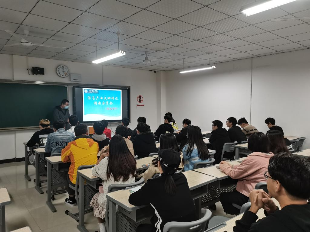 车辆工程教研室毛国平老师于11月18日在竹逸书院A303,开展进行“信息产业大咖传记阅读计划”的读书分享会。毛国平老师对本次大咖阅读计划进行了讲解。他首先强调了读书的重要性,点出了要有选择的读书,以及如何读书等。他引用了高尔基的名言一书籍:“书是人类进步的阶梯”。告诉同学们书籍是人类宝贵的精神财富,是知识的源泉,是经验教训的结晶,是走向未来的基石。毛老师勉励全体师生与好书为友,以好书为鉴,做一个勤奋的读书人;做-一个快乐的读书人!希望通过读书节活动让读书成为每一位老师、每一位同学的习惯,让校园处处飘溢着书香,让经典润泽生命,让好书伴你我同行!与书相伴的人生,一定有质量,有生机,书香飘溢的校园有一定的内涵。