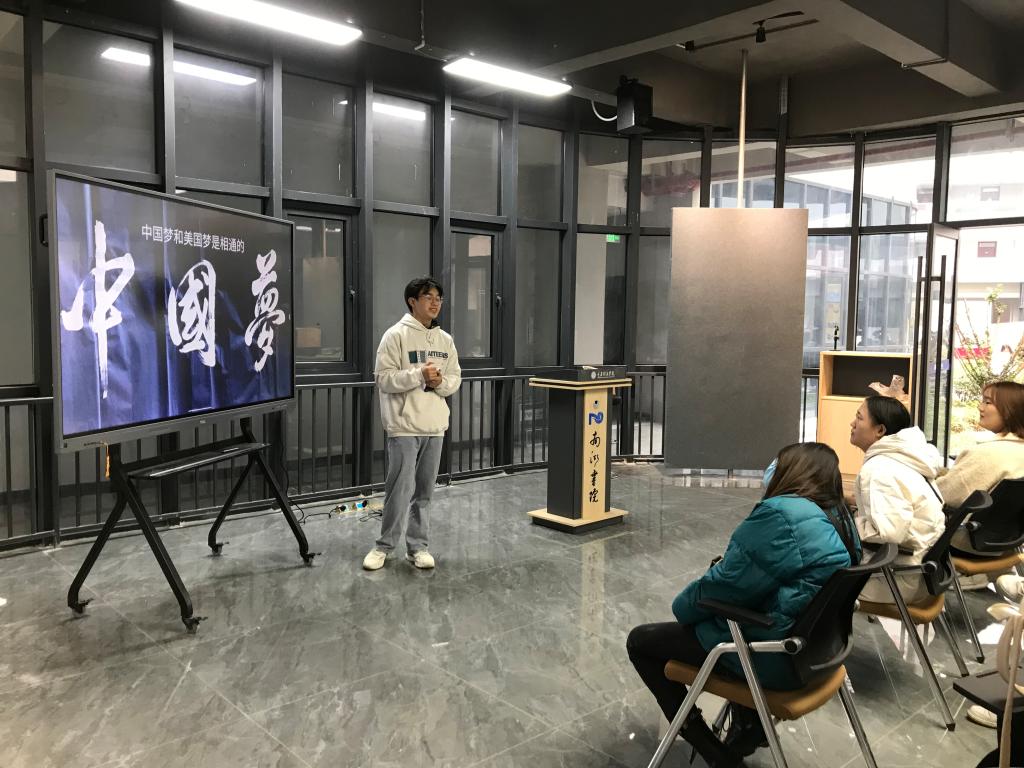 本次分享会在3位同学们的自主分享中拉开序幕,李链同学为大家带来了《未来已来》的阅读感悟,通过解析本书目录,聚焦“年轻人就是未来”、“中国梦和美国梦是相通的”、“梦想和理想的差异”等部分,进行了深入阅读观点分享。