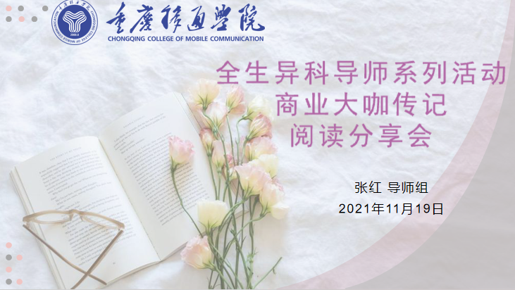 这次大咖阅读分享会,有三位同学进行了自我分享,其中一个就是我,很开心老师能够给我这样的机会,展示自己,提升自己;魏余芳同学分享的《创始人手记》也让我感悟到了,作为当代大学生,不能被专业所局限;通过李链同学分享的马云,我觉得不管我们什么身份从事什么行业,我们都要坚持,并且脚踏实地的前进。张老师也分享了一段关于王晓波在小米求职的片段,在张老师的带领下不仅会了解商业大咖传记带给我们的影响,还能让我不爱看书的人有一个看书的习惯。