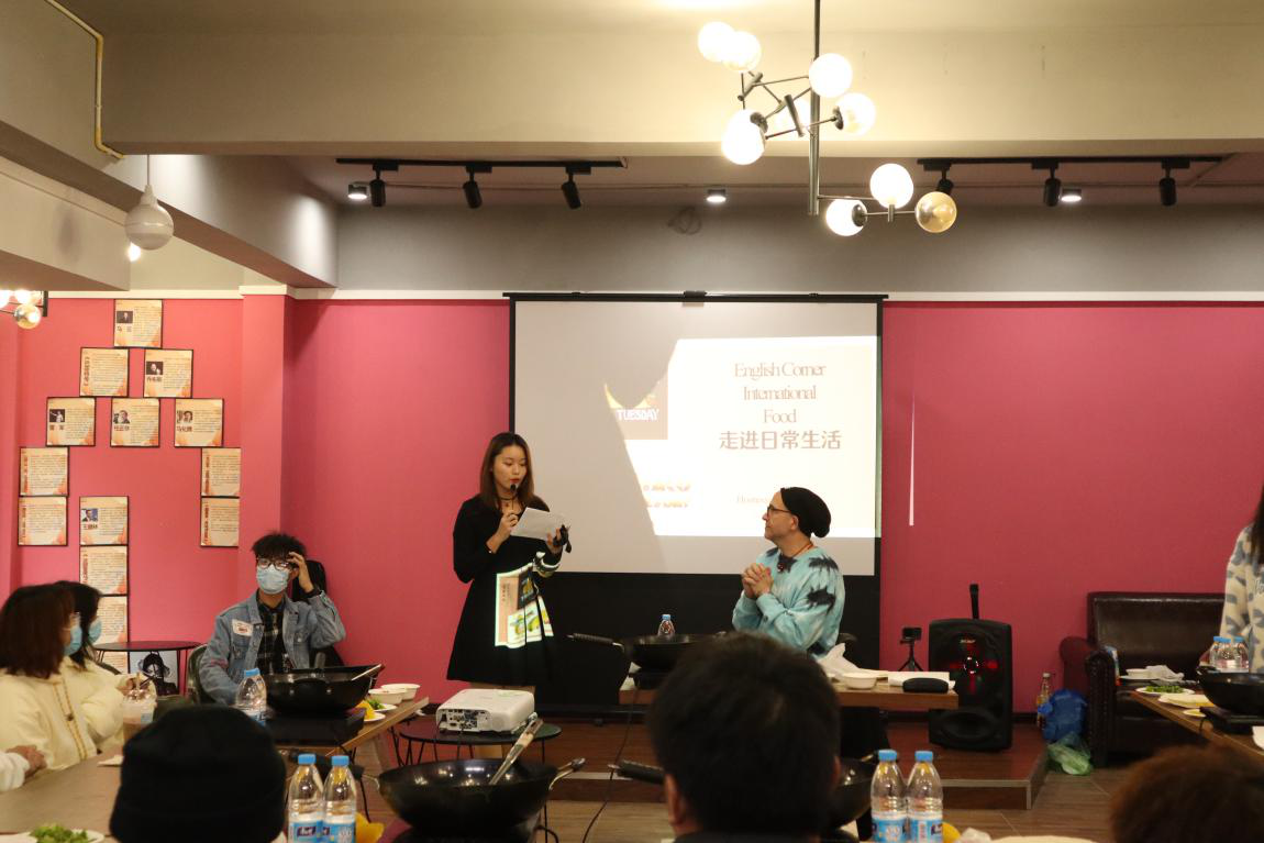 此次英语角活动邀请到了外教老师Peter、Clive老师、社团指导老师唐智盟一同参加,peter老师用美式英语介绍自己家乡的传统美食并与同学们进行交流互动。老师诙谐幽默的风格也让同学们对本次“Life of foodie”英语角活动表现出了浓厚的期待和兴趣,随后在主持人的带领下,全体人员在“ABC”游戏里气氛逐渐轻松活跃顺利完成破冰。