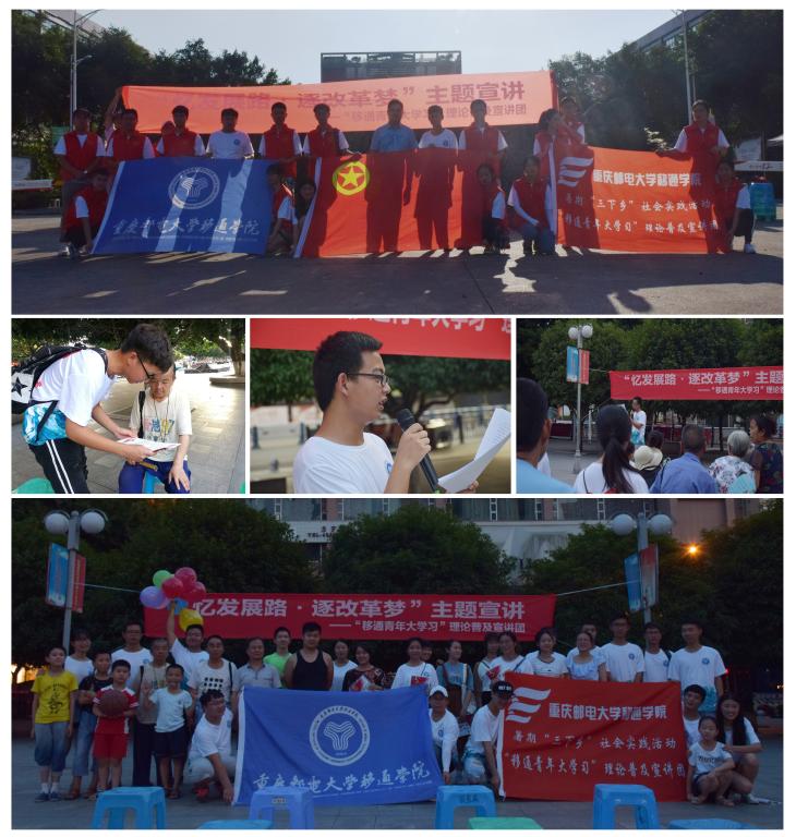 2018年7月20日星期五,重庆邮电大学移通学院“忆梦”宣讲团赴塔尔门广场开展解读十九大精神宣讲活动。