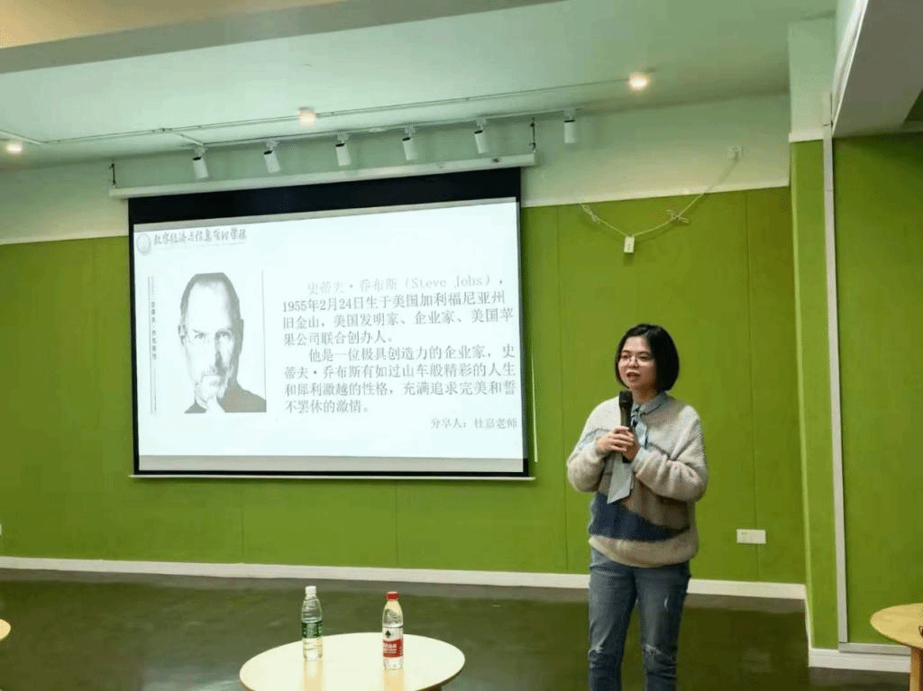 杜嘉老师以星座来讲解《乔布斯传》,用新颖的读书方式激发了同学们对这本书更浓厚的兴趣。杜嘉老师提到乔布斯是典型的双鱼座,他是一个谨慎的人,对事情要求很高,善于观察周遭的一切。他又是一个富有想象力的人,能跳出传统思维模式考虑问题,创造出苹果品牌。杜嘉老师评论道:“乔布斯既具有绅士的品质,也具有恶魔的性格,他是一个比较二元化和一个矛盾体的存在,这就是乔布斯性格的一个极端”。通过杜嘉老师的讲解分析,加深了同学们对乔布斯的了解,让同学们明白到从多角度去思考问题的重要性。