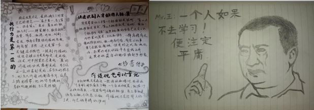 熊顺欣同学读过《彭蕾传》后将自己的感悟做成一副手抄报,通过绘画和摘抄记录心得体会。作品展示成功引起同学们的阅读兴趣,阅读既要有读的过程,也要有结果的呈现。张俊同学以肖像画配文字的形式诉说着《王健林与大连万达》给他内心的触动。所以说,读书结果呈现方式不止一种,同学们以各种各样的方式记录着他们阅读的时光,一笔一划都记录在心里,有专注,有快乐。