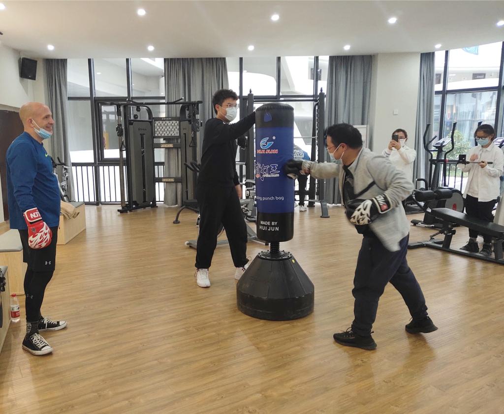 体验器材的过程中,每位老师都干劲十足,兴奋热情的和直播间的同学们进行互动,屏幕前的大家也感受到了老师们对运动的喜欢与热爱,健身房回荡着欢笑声。分享会的最后,几位老师肯定了体质健康的重要意义,鼓励同学们充分享受运动带来的快乐。体育运动不仅能培养坚韧的精神,也会让你体会到其中乐趣,这就是竞技体育的魅力所在。