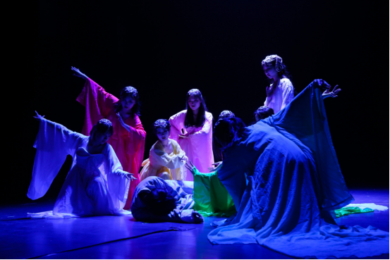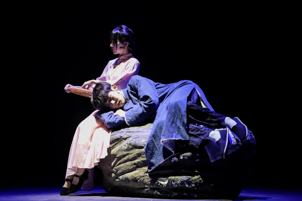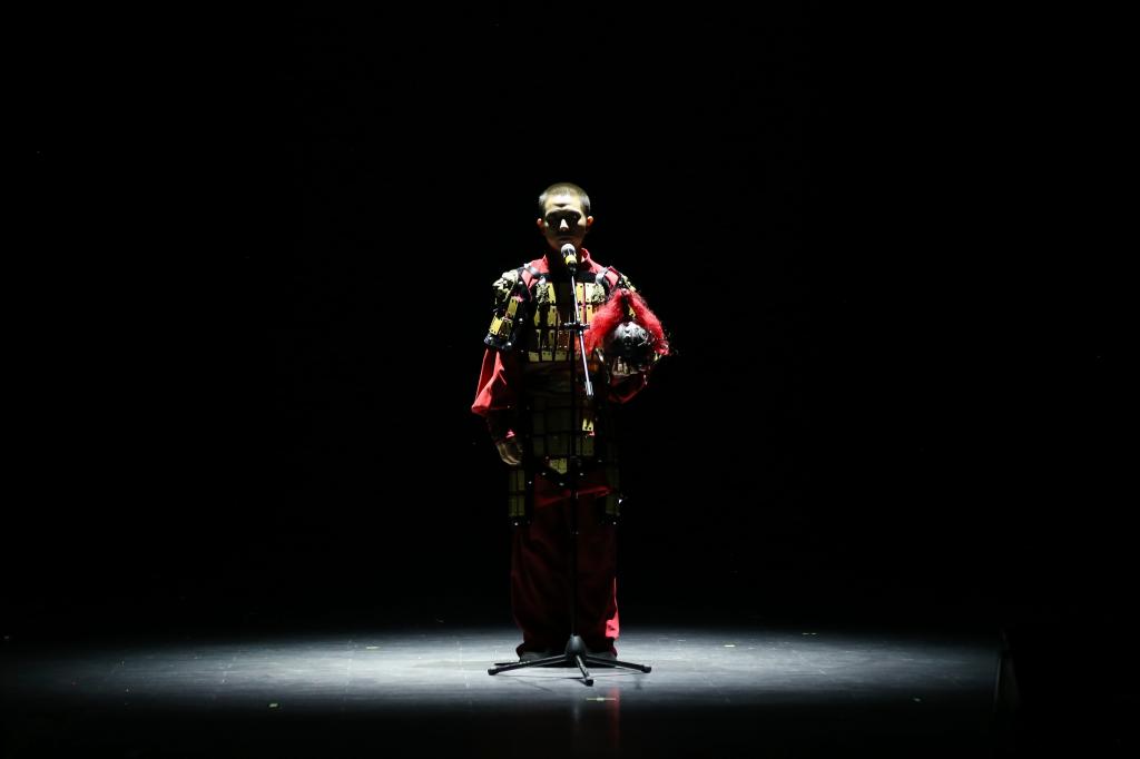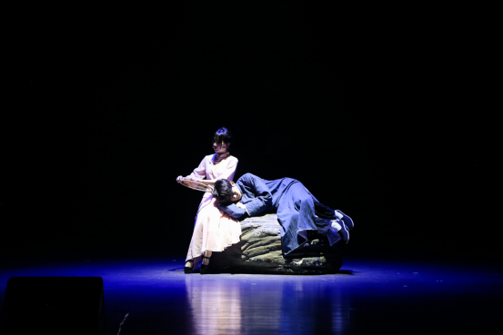 《我,堂吉坷德》演员身穿铠甲,怀抱头冠。孤身独立与舞台中央,头顶灯光打下一片阴影,铿锵的男声诉说着堂吉坷德的执着与勇敢,中世纪的沉沦与荒诞。画面一转,又以《小倩勾魂》中聂小倩和宁采臣的故事向观众们展现,中国式的妩媚和贪念。