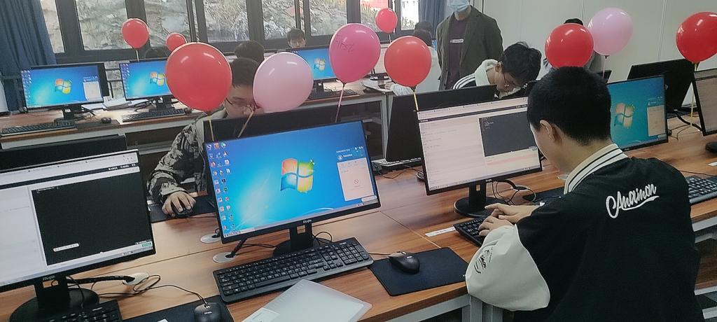 10月23日下午2时,比赛正式开始。比赛场上的气氛紧张,角逐激烈,参赛选手们或低头演算,或埋头苦思,或敲键如飞。随着时间的推移,不断有选手解题获得气球,一场紧张激烈的气球争夺战在选手之间展开。
