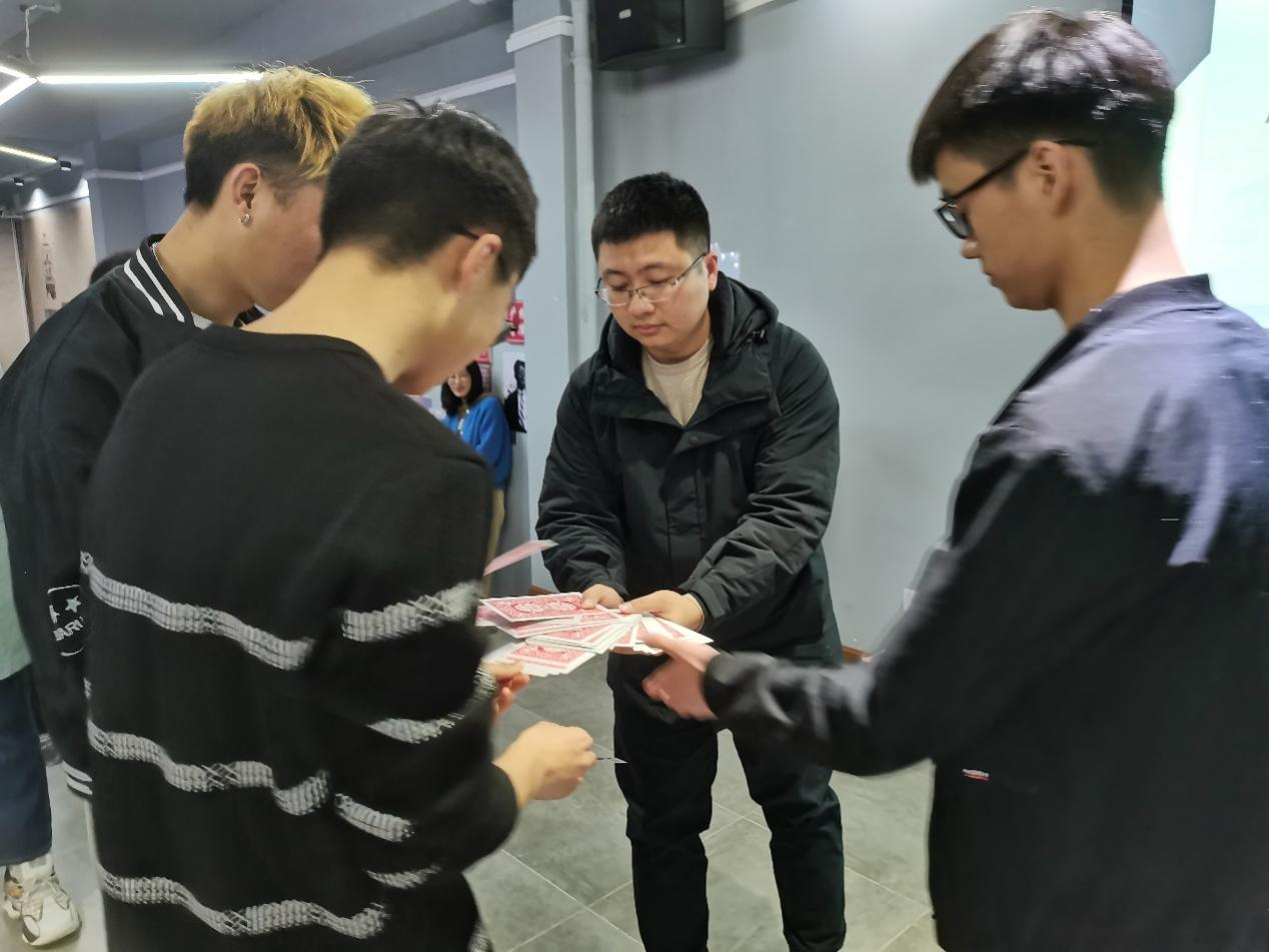 执牌于手,柳暗花明。同学们相处逐渐舒适之时,佘桂隆老师的“纸牌游戏”进一步的拉近了在同学们的距离。不知道自己的底牌,只能通过一对一的交流来获取些许信息,在交流中找准自己的位置,靠反应来改变自己的底牌,同学们玩得不亦乐乎,佘桂隆老师说道:“没有绝对好坏的底牌,这都取决于你的方式”,简单的一句话,让同学们对“生涯”有了自己的理解。
