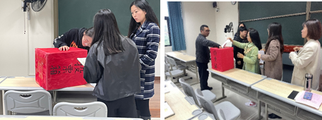 通过计票,监票人刘贵容老师公布计票情况,并宣读选举结果。经过票决,选举产生新一届党总支委员会,分别为潘显兵、任瑞娟、陈明燕、徐桂霄、廖阳五位同志。相信新一届党总支委员会的成立能够继续把数字经济与信息管理学院党总支建设抓好,增强战斗力,使其永葆生机与活力。