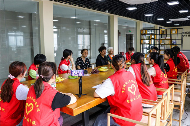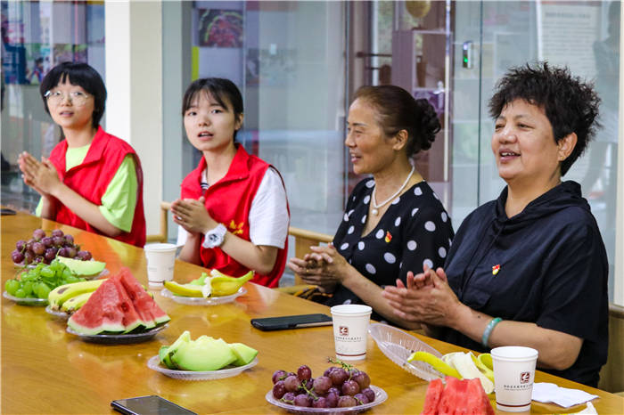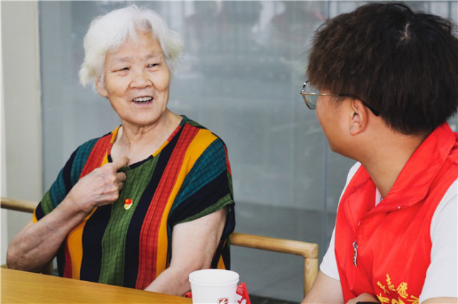 “看到你们年轻人,我这心里啊,就也年轻起来了!”康奶奶、陈阿姨、洪阿姨一进入活动室,就不禁发出感叹。此刻队员们身上红色的志愿服也已然成为一种自豪。关于当初他们是为什么入党,陈阿姨讲到,他们那一辈人,是生在新中国,长在红旗下,而像观察团的当代青年,是生在新新中国,长在新时代。他们从小接受的教育便是学雷锋、学焦裕禄,更加深了他们向党靠近的决心。80岁的康力奶奶更是说,入党绝大部分是受到父母老一辈的影响,血液里便流淌着与红旗共进退的红色基因。中国成其为中国,正在于有千千万万中国人生于斯、长于斯,情感系于斯、认同归于斯。