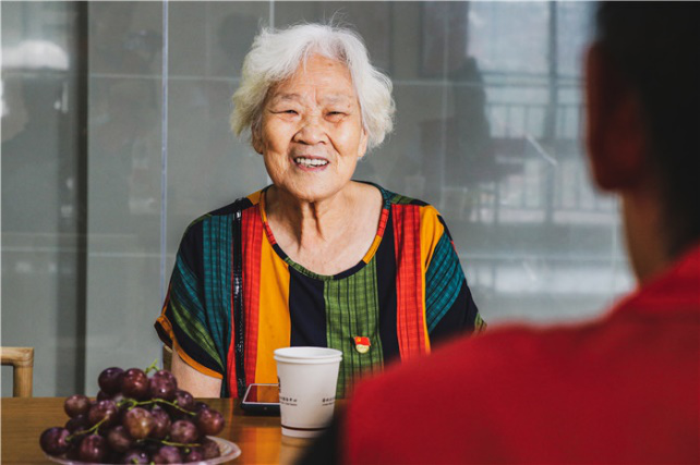 说起重庆解放战争,洪阿姨感慨尽管国家曾历经苦难,人民也曾饱受折磨,但成功解放重庆是历史最终的选择。共产党的出现,为中国带来希望,中国共产党勇敢地担负起历史的重任,为中华民族的独立解放,为中国人民的平等自由作出了不懈的努力并付出了重大牺牲。而每一代共产党人始终怀着崇高的理想、坚定的信念,如今也带领着全国人民一步步从站起来到富起来再到强起来。作为年纪最大的康奶奶,奶奶除了对解放军战士的抛头颅洒热血表示感慨,她说道,“没有解放战争的胜利,就不会有重庆的今天!”说到动情处,三位老党员更是百感交集、饱含热泪。