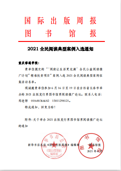 通过此次系列活动,让学生们养成了读书的习惯并切身体验原创内容的快乐。在对优质的文化内容非常渴求的今天,共青团重庆移通学院委员会、重庆移通学院创意写作学院凭借多年的行业深耕和沉淀,当之无愧的成为我校阅读和原创优质文化引领者。基于此,双方携手达成战略合作,未来将在一年一度的“阅读让生活更完满”公益阅读推广计划系列活动中,联合为广大师生提供更多精彩、优质的内容,共同推动读书文化产业的前进。