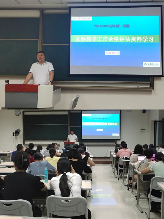会议开始,潘显兵院长带领大家深入学习了教学工作合格评估的相关材料。教学评估是评价、监督、保障和提高教学质量的重要举措,具有重要的现实意义,在座的各位老师应以积极的态度理解评估,以平常心态抓好评估,同时要加强高校主体意识,加强自我评估和质量保障体系的建设,并指出各位教师在今后的教学日常中贯彻落实教学工作合格评估工作要求,以提高我院教学水平。