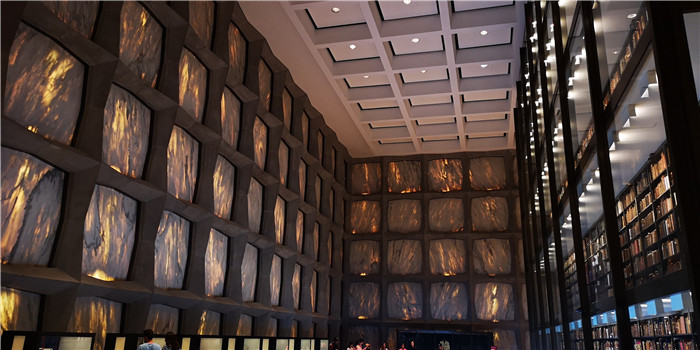 导游小哥进修的是历史学专业,对于他来说这座Beinecke Library由当地印章商人捐赠的图书馆是他最喜欢的地方,这里的藏书丰富,让人像是被书本包围一般。由于这些书籍历史悠久,所以建筑材料只能用薄薄的大理石,在保证一定透光性的基础上,又不能让书暴晒干燥或者下雨受潮。另一个Sterling Memorial Library像一个教堂一般,墙上的每一幅图片都有它的故事,这些故事,串联起整个耶鲁的历史。紧邻图书馆的是一个装修很豪华的Dining hall,小哥说在里面吃饭、学习和睡觉是他的生活常态。我想,在这个像Harry Potter电影里的校园里生活,整个人都会变得坚毅又不失活力。