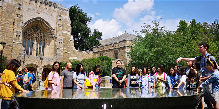 在一个苏格兰裔大三的学生的解说下,我们走进耶鲁校园进行探索。和哥伦比亚大学不同的是,耶鲁大学的校园更像一个古时候的西方庄园。其实严格来说,耶鲁大学是没有校园的,每个学院都挨得很近。正值暑期,参加耶鲁大学High school program的学生们让这座“庄园”充满了活力,来自不同国家的学生在草地上玩儿橄榄球,我们作为参观者,心不由自主地随着音乐舞动起来。