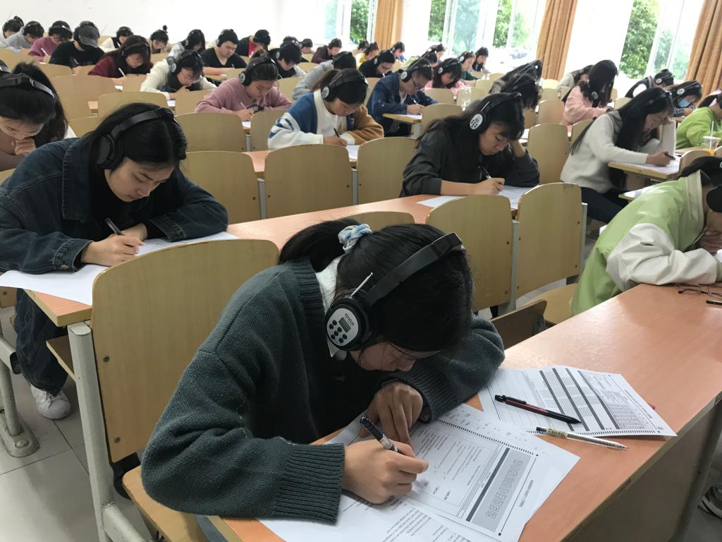 9:30铃声响起,考试正式开始。伴随着考生们紧张的心情,开始了听力考试,考生们认真听取内容,及时做笔记,将自己听到的内容尽可能多的记录下来,填在答题卡上。10:00监考老师收取答题卡一后,同学们进行到语言知识部分的答题。考生们认真思考,奋笔疾书,把握一分一秒。10:55监考老师开始收取答题卡二,分发答题卡三。但发现有不少同学因为没有把握好时间,题目完成度不高,有些许遗憾。在最后写作部分,同学们认真审题、专心致志,努力发挥出自己的最高水平,为自己争取更高的分数。