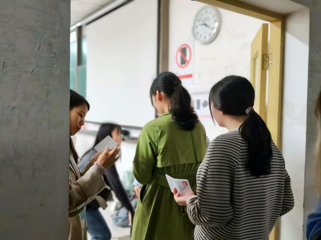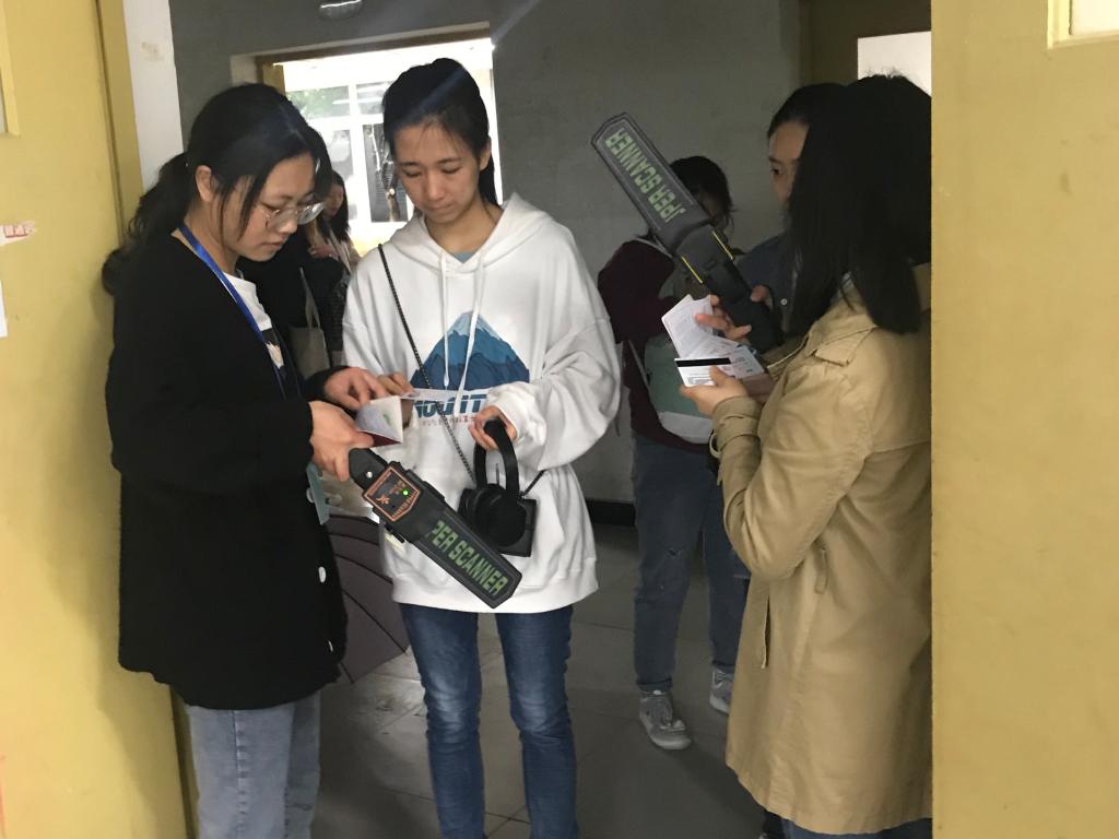 早上八点,第五教学楼陆续迎来参考的考生,大家胸有成竹、自信满满。随着铃声响起,同学们秩序井然,排队入场,监考老师在考场门前依次对考生用金属探测仪进行检查,查看考生是否持有本人的身份证和学生证。
