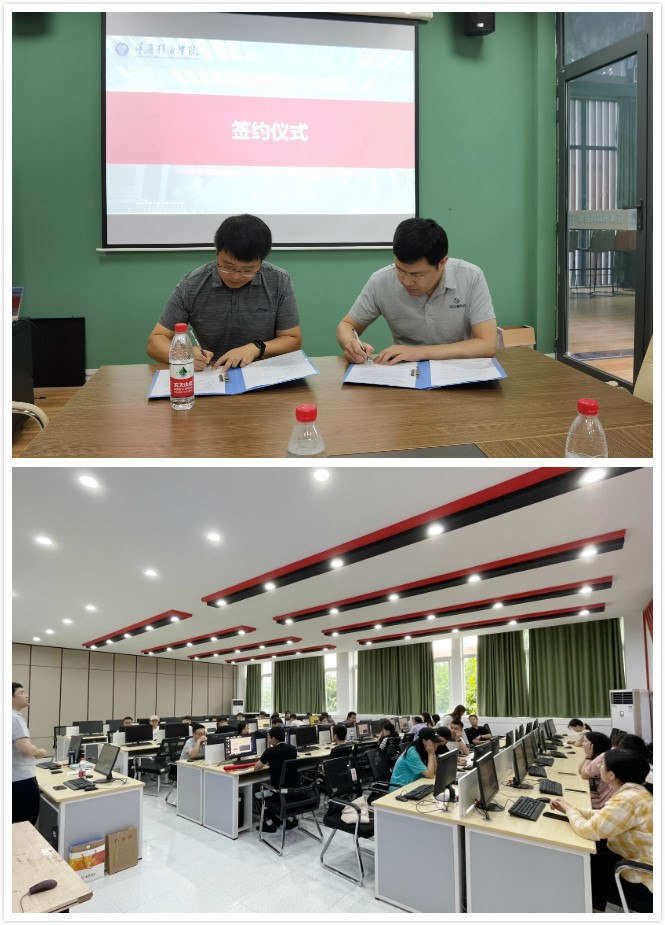 学院副院长闫会峰和深圳市科力锐科技有限公司总经理张勇正式签订人才定制培养协议。签约仪式结束后,科力锐科技有限公司一行与学院领导移步到第三实验楼进行定制班开班授课。张总表示期冀在以后的日子里,能与学校建立更加完美的合作关系。同时企业与学院建立的合作关系也是为了今后企业对学校人才的发现与培养做好了充足的准备。