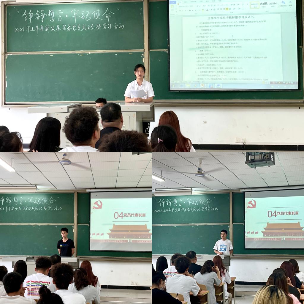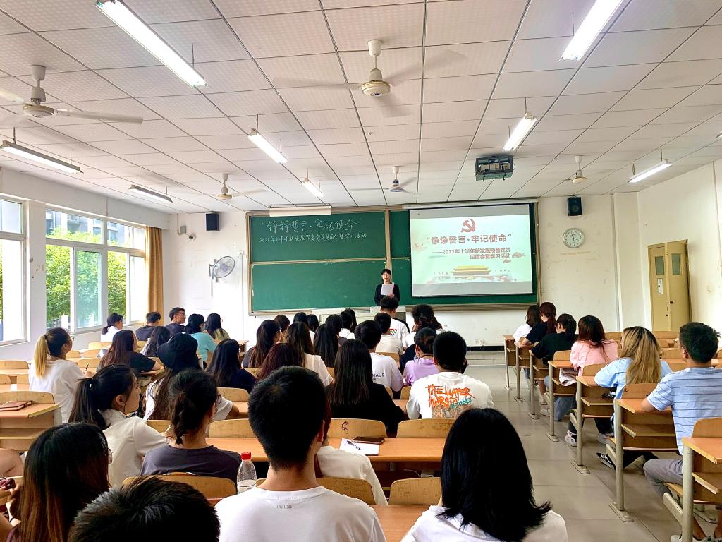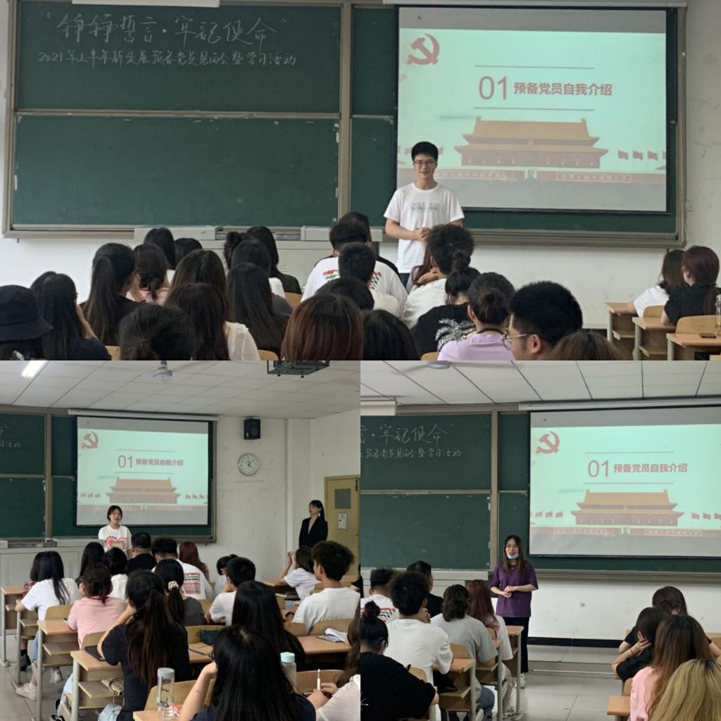 为提高预备党员政治素养,提升组织动员能力,充分落实党员发展、教育、指引工作的有效衔接。淬炼商学院学生党支部于2021年6月21日下午16时,在第五教学楼5101教室开展了以“铮铮誓言·牢记使命”为主题的预备党员见面会。