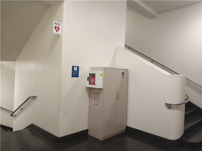 AED,中文名为自动体外除颤器,是一种便携式、易于操作,稍加培训既能熟练使用,专为现场急救设计的急救设备。如果有人突然心跳骤停,每提前除颤一分钟其成活率就能增加7%-10%。初入伯克利分校的教室楼栋,随处可见AED的指示标志和挂在墙上的AED,这确实让我非常震惊。AED的价格比较昂贵,这里的每栋楼、每层楼放置都不止一个。从某种意义上讲,学校对在这里工作、学习的所有人都非常关爱。