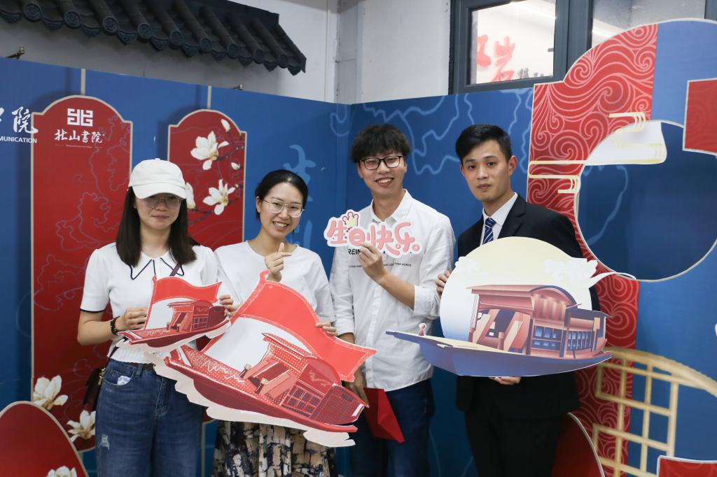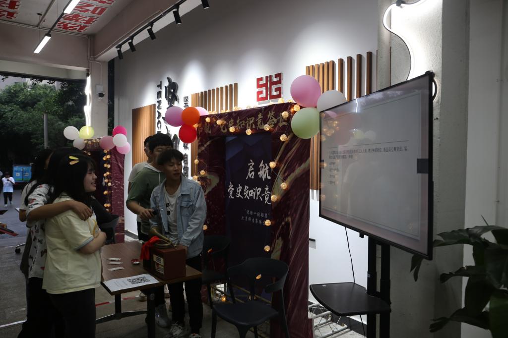 100年,我们的祖国,高山巍峨,俯瞰历史的风起云涌;100年,我们的祖国,大河奔腾,傲视命运的惊涛骇浪。200余名师生在北山书院一楼大厅7个项目体验区,亲身践行劈波斩浪、勇往直前的精神。登船·船票领取——起航·党史知识竞答——丰收·甜品烘焙制作——共享·投屏互动——希望·笔画彩绘——铭记·合影打卡——远方·——祝愿树许愿,项目的设置,是莘莘学子在登船后的一系列经历和体验,在表达对寿星的殷殷祝福的同时,也加深了师生对党史知识的了解和学习。