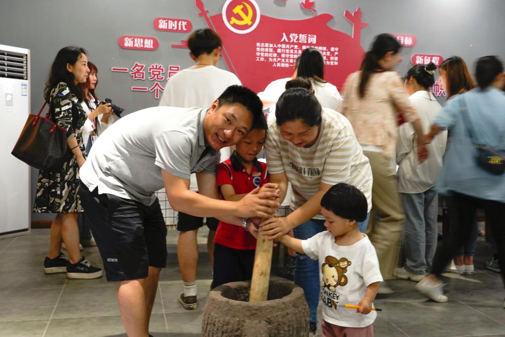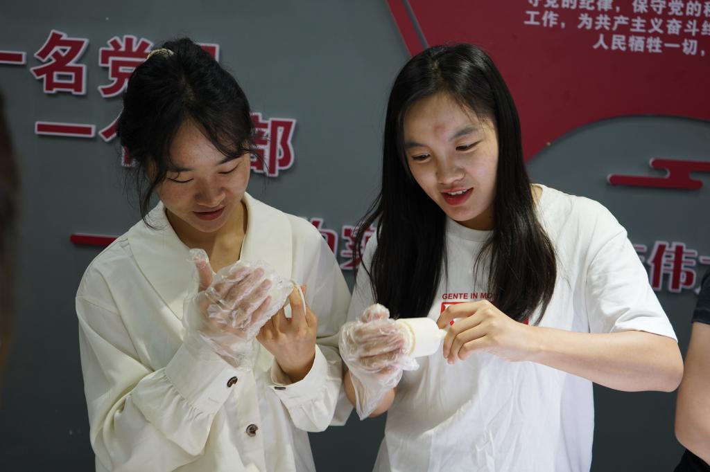 回首往昔,追忆先辈们浴血奋战的岁月。我们擘画江山,革命火种传遍华夏九州;我们回归初心,不忘红船开拓来路。在品尝幸福之余,现场50余名师生共同体验了打糍粑项目,他们身体力行的体验先辈们曾经打过的糍粑,糍粑越黏,日子越甜。一锤一锤打出的是美好未来,一锤一锤打出的是幸福生活。