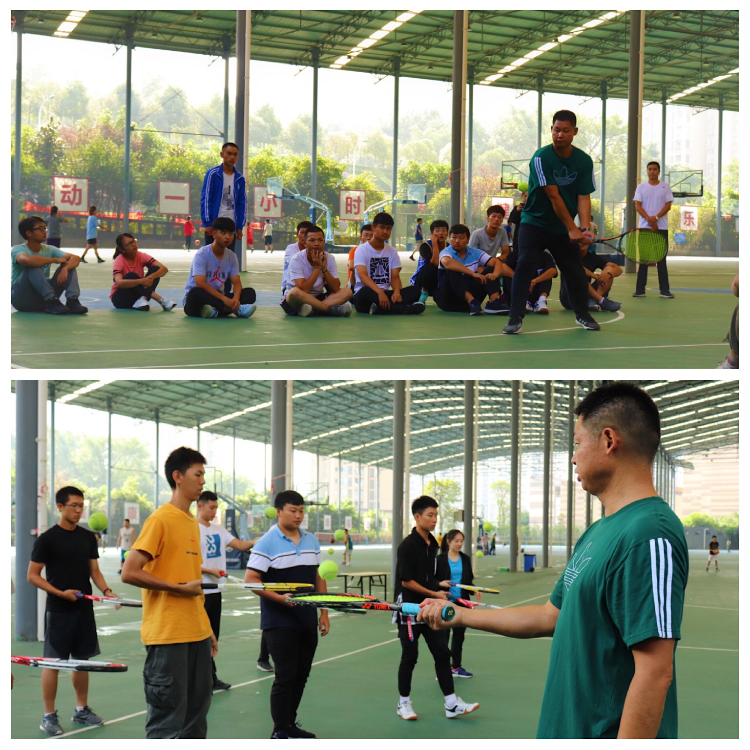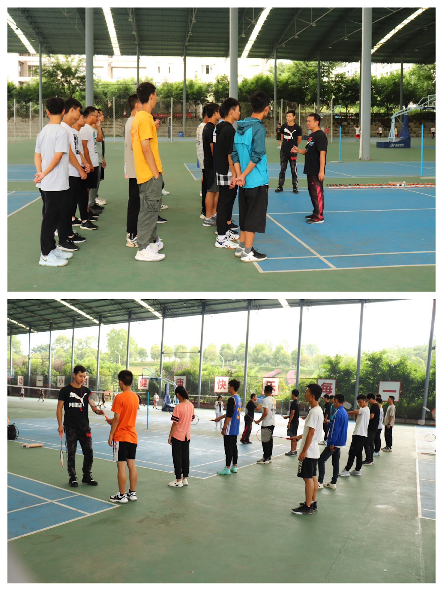 2019年9月21日上午8:00,一年一度的新生体验课拉开了序幕。竞技体育中心的11位老师在主任张永刚、教学部主任刘玉林的带领下,于C区风雨篮球场开始了为期一天的新生体验课。