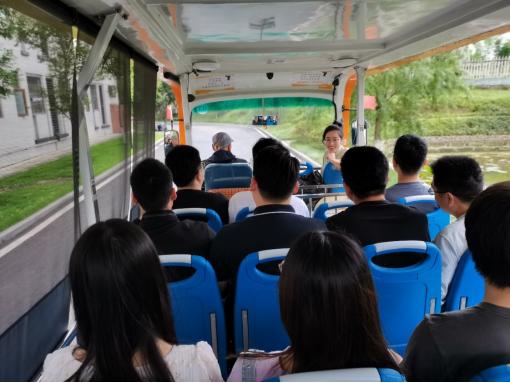 上午9时,在郭淼老师的带领下,远景学院返校校友一同乘坐校园观光车游览学校D区,相谈甚欢,回忆点滴,感慨变化。