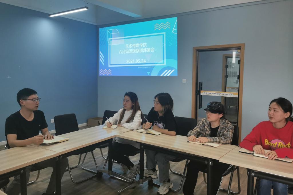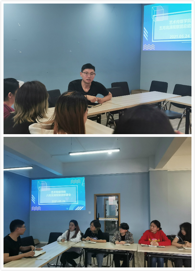 5月24日中午13:00,艺术传媒学院完满观察团在汇江书院多功能活动室组织开展五月完满观察团总结评析会及六月完满观察团工作部署会。我院完满观察团工作指导老师叶进,及全体完满观察团成员围绕我院完满观察团组织建设、观察团管理、资料汇总、完满观察团工作开展、反馈情况与问题等展开分享与交流。