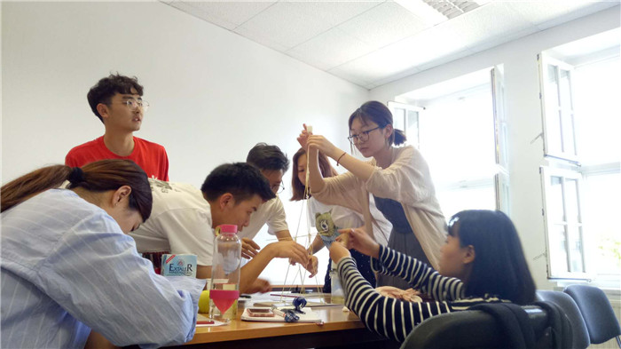 记忆犹新的自我介绍结束后,开始了一个团队合作游戏――面条搭塔。Stefan老师给每个小组相应的材料:20根意大利面条和1颗棉花糖,小组共同协作,用面条搭塔,把棉花糖支撑到最上面,规定时间内棉花糖最高的小组获胜。每个小组的成员都非常努力,因为面条太细,即便眼看搭到最高快要成功时,却因为支撑不了棉花糖重量,功亏一篑。在这个过程当中,每一组都遇到了困难,但每一组团队合作都成功完成比赛。游戏结束,Stefan老师对我们进行总结,他告诉我们这个小游戏很多人第一次玩都没有成功,因为大家都去争取搭建最高的塔,而忽略塔顶还需要承受棉花糖的重量,就像在我们生活中,很多事情并不是我们所想象的那么简单和轻松,一开始就好高骛远,只有不断地尝试,不断地改进,步步为营,才会取得成功,这就是Stefan老师通过游戏想要传达给我们的理念。