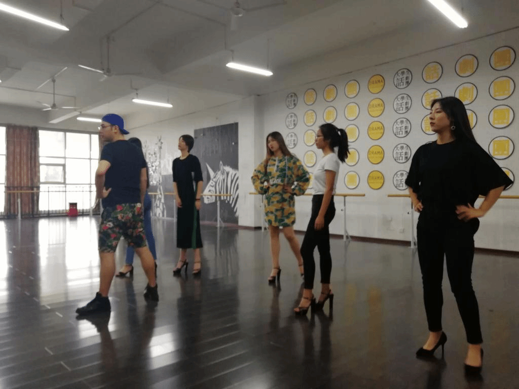 (导师指导模特们训练)
