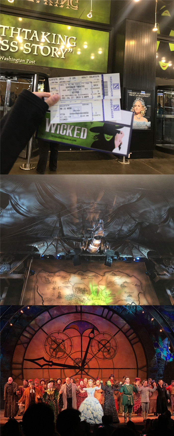 在百老汇,有一些炙手可热的剧目是没有在“TKTS”售卖折扣票的,例如《汉密尔顿》《狮子王》,以及《魔法坏女巫》。《魔法坏女巫》被誉为是《歌剧魅影》后这个时代最好的作品。它不仅是一个爱情故事,更是一个令人称奇的魔法故事。这部音乐剧是对家喻户晓的《绿野仙踪》故事创造性的解构与重述。诺大的剧院中,有小朋友、青少年、中年人、老年人,而每一个人都对这部音乐剧有着不同的定位,它也能给每个人都带来不同的体验和收获。