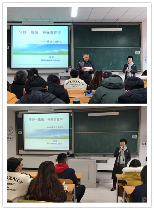 为进一步加强在新时代、新阶段下我校师风师德建设,12月16日下午,通信与物联网工程学院蒋青教授为全院教师作了题为“守好一段渠,种好责任田——浅谈立德树人”师风师德讲座。本讲座由唐林建副院长主持。
