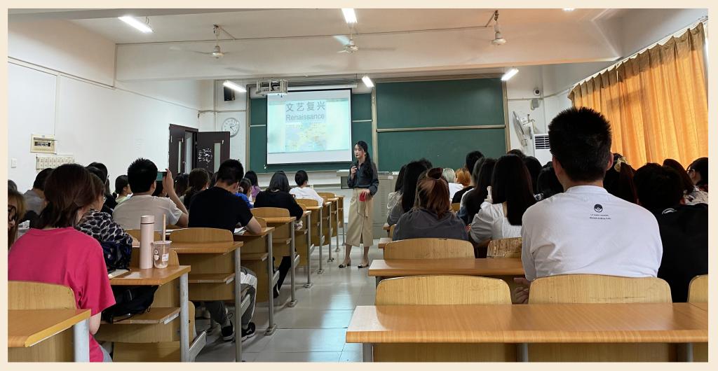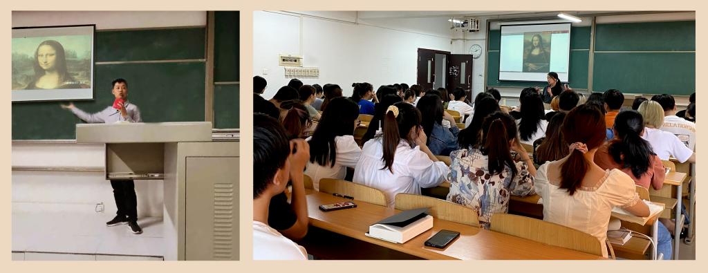 在新文科建设背景下,为了探索人文艺术类通识课程学科融合教学新模式,推动通识课程教学创新,提升学生跨学科认知能力。5月14日下午,在1409教室,通识教学部《欧洲文明的现代历程》课程教师颜昌义与远景学院《艺术史》课程教师赵丹开展了合作教学实践,共同为同学们讲授了“历史与艺术作品中的文艺复兴”相关内容。