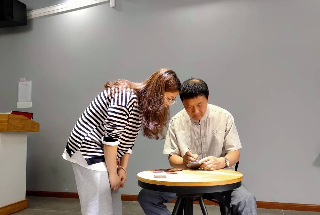 为持续推动和发挥学业导师在书院的影响力,增强学业导师和书院学子的交流和互动,近日,北山书院学业导师李凤勤老师邀请合川峡砚制作技艺代表性传承人易宗成老师莅临北山书院,于会客厅开展“峡砚”实践教学活动,号召和引导学生身体力行的传承和践行工匠精神,感受合川峡砚制作技艺的特色与风采。