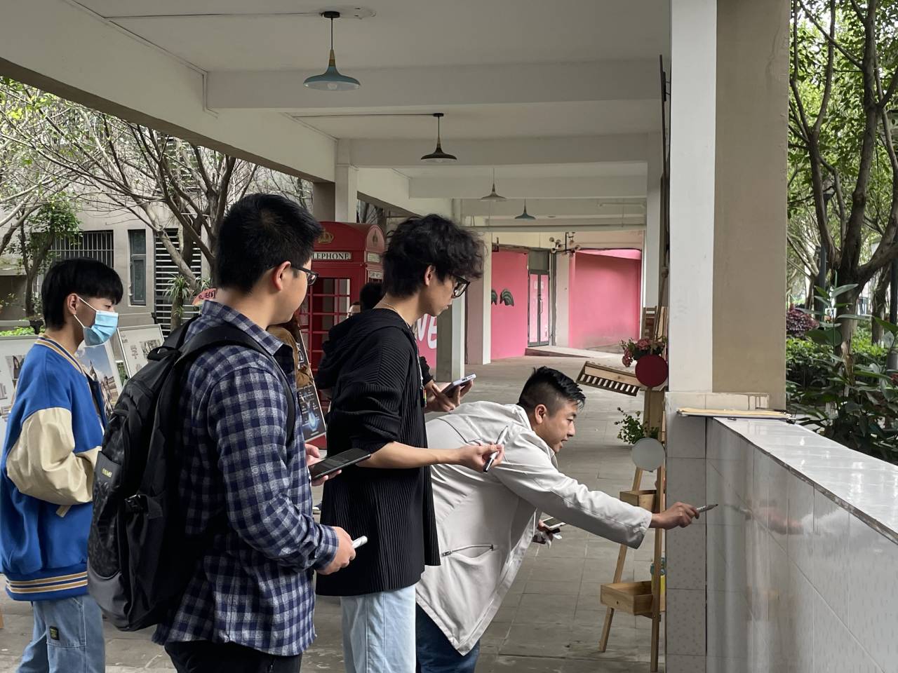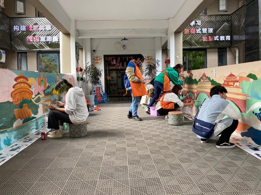 其中,爱莲书院联动书院学业导师美学空间项目,按照爱莲书院国潮设计风格,确定墙绘设计规划,前期以“鉴往”为主,师生共同描绘川渝地区传统文化地域元素,后续将联动钓鱼城科幻中心引入“知今”系列;