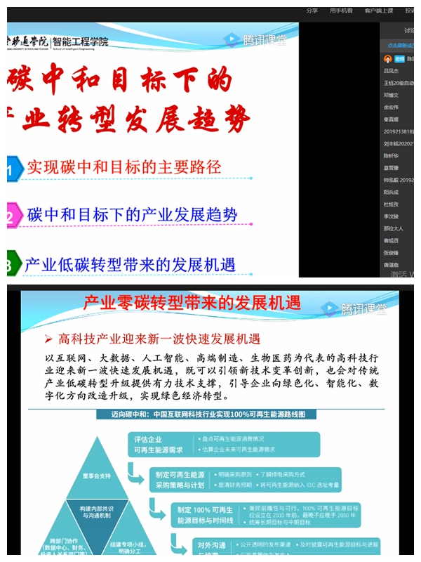 4月30日,荷悦书院群名誉院长陈民铀教授通过“云端”连线,围绕“碳中和目标下的产业转型发展趋势”这一主题,从碳中和的含义、碳中和的发展前景、碳中和的未来科技发展战略等方面深入浅出地向同学们解析了“碳中和”目标下的产业转型发展趋势。
