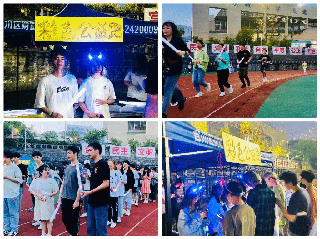 此次公益跑由通信青协与通信体协共同牵头,引导移通学子响应“全民健身”的口号,以“绿色”、“健康”运动为宗旨,抬起脚,迈开腿。用实际行动献礼建党100周年,用汗水展现对环保的态度。同学们手持荧光棒在a区足球场慢跑一公里,虽然天气炎热但并没有阻挡同学们的步伐。有的同学大汗淋漓、有的即使很累也坚持跟上队伍、有的拿着荧光棒兴奋地挥舞。彩色的队伍是他们青春环保的体现,跑动的背影是他们献给建党100周年的礼物。