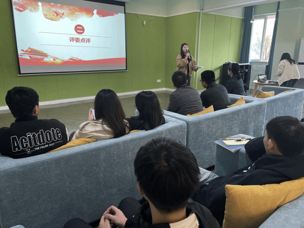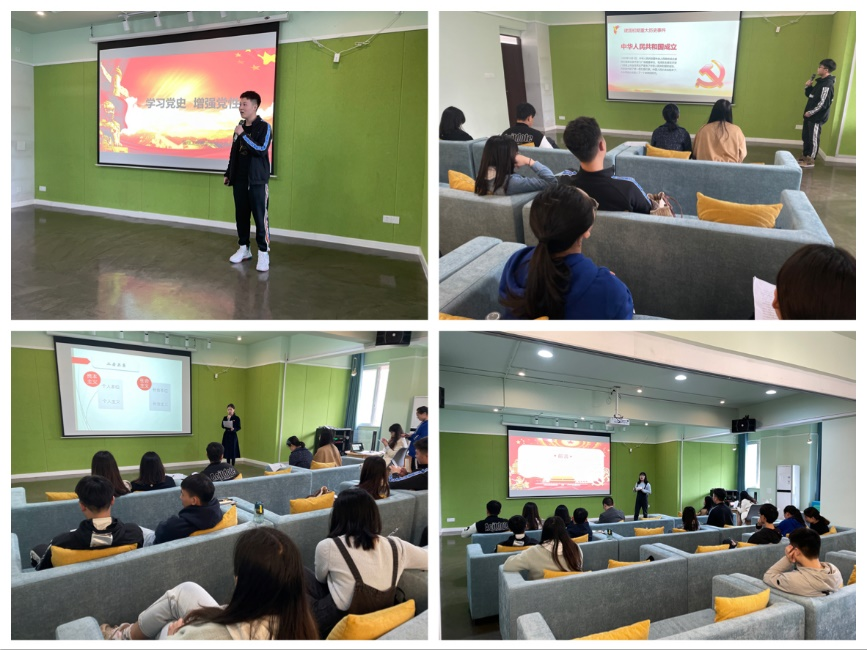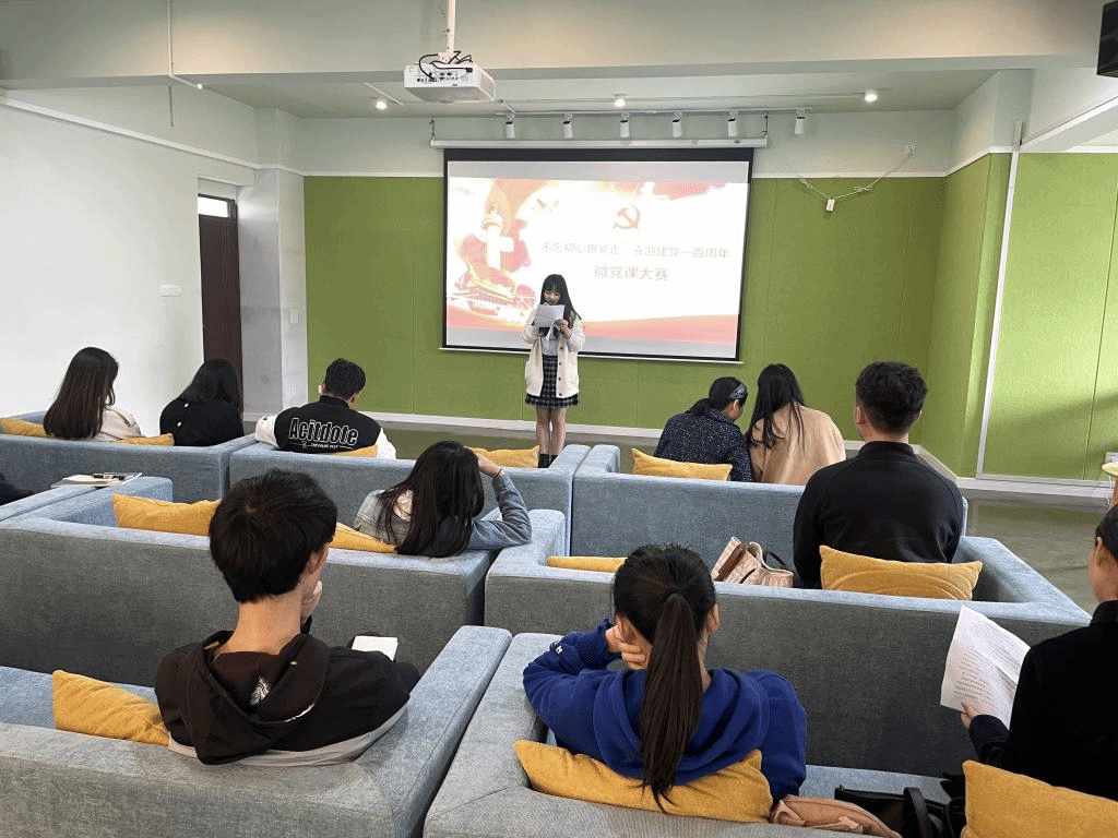 本次微党课大赛采用积分制,各党小组汇报成员紧扣庆祝建党一百周年主题,结合党史、新中国史、社会主义发展史和改革开放史,讲身边的人和事,讲百年奋斗,讲家国情怀,讲发展成就,讲时代精神,讲未来憧憬,以事说理、以小见大、声情并茂,用生动的案例、凝练的语言呈现了一堂堂精彩的微党课。第一党小组廖宇航同志谈到党的建设经验、领导武装斗争的经验、执政的经验、社会主义建设的经验等等,都是宝贵的财富;第二党小组夏浩钦同志通带我们重温了1949年10月1日天安门广场上升起的第一面五星红旗的激动时刻;第三党小组吴籴同志则详细从社会主义发展史的六个阶段以及如何建设社会主义两个方面带来展示;第四党小组汪妍同志通过歌曲《春天的故事》引出一位“老人”分别在南海边画了一个圈和写下诗篇,讲述改革开放和现代化建设的总设计师邓小平带领我国走向改革开放之路的故事。
