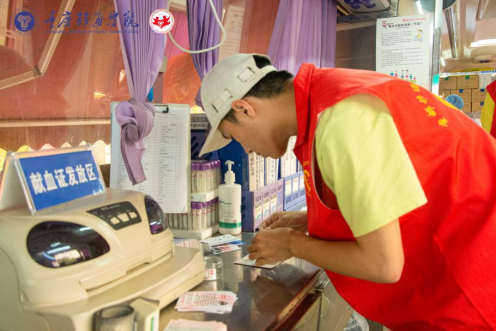 4月28日上午8点,志愿者们整装待发。清晨的校园里学生稀少,但依旧有许多同学特地来到我们的献血点,积极参加我们的献血活动。我们的志愿者悉心为前来献血的同学们进行指引,协助他们填写信息。天气逐渐炎热,志愿者们的工作也愈渐忙碌,但他们都一直脸露微笑,耐心的为大家服务,为社会传递力量,充分展现移通热情。