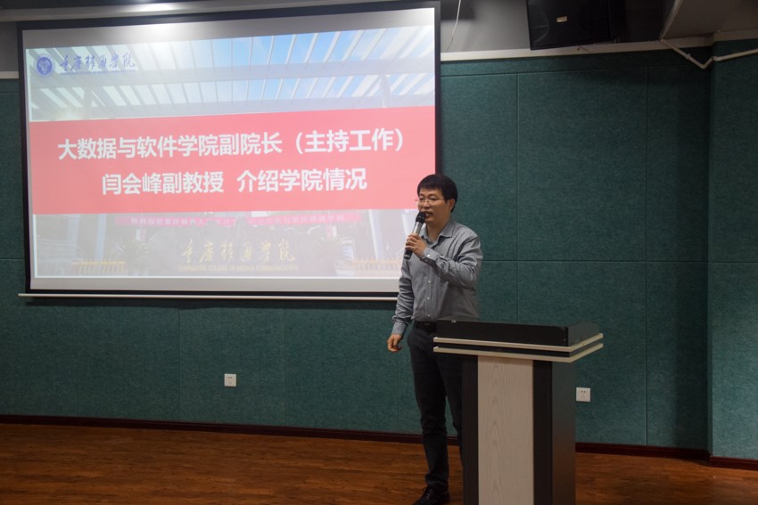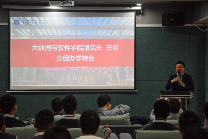 桃李不言,下自成蹊,闫会峰副教授向龙门浩中学师生倾情介绍了我院从无到有,以点滴汇聚江河的辉煌岁月。闫会峰副教授讲解到我院建立于2000年5月,至今已发展到有计算机科学与技术、软件工程、网络工程、数字媒体技术、数据科学与大数据技术共计5个本科专业。漫漫十余哉,我院发展迅速,似潜龙腾渊,鳞爪飞扬,我院网络工程专业2013年入选重庆市“三特行动计划”特色专业建设项目;软件工程专业2014年入选校级特色专业,2021年更是成为了全重庆市唯一通过德国ASIIN工程教育认证的本科专业,获得了重庆市其他高校以及重庆市教委的认可与赞扬。闫会峰副教授谈到为了进一步拓宽我院发展空间,也为迎合我国“2035规划”,我院数据科学与大数据专业也将列入重点发展专业,为我院学子创造出更优良的学习环境,帮助我院学子在未来的人生规划中增添一份助力。