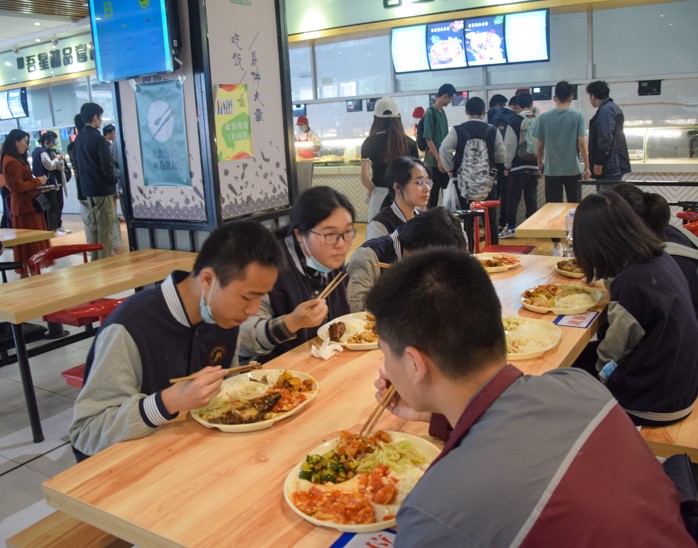 临近正午,烈日炎炎下,王焱老师邀请龙门浩中学的师生们一齐来到北校区北苑食堂共进午餐。偌大的北苑食堂吸引了龙门浩中学同学们的目光,多种多样的餐食让同学们目不暇接,纷纷相邀同学就坐一桌,尽享美味。