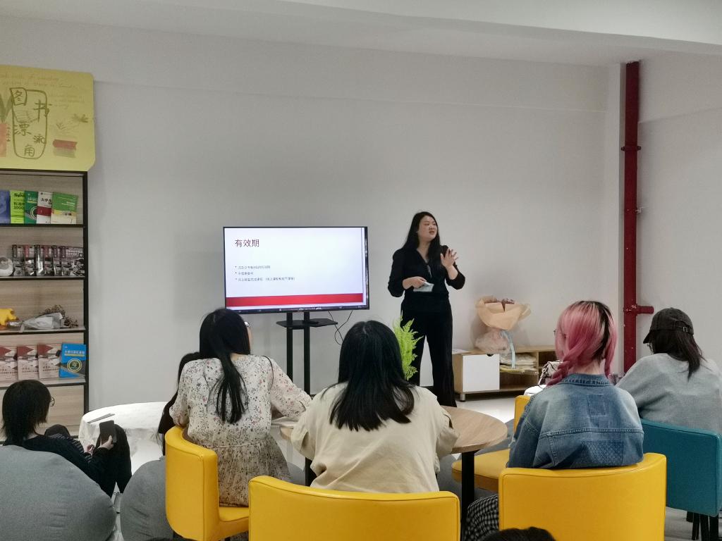 朱陶老师以自身考试经历为切入点,为同学们讲述现在考取对外汉语教师资格证的相关知识,强调其较高的含金量以及各种优势,不仅认可度高、具有官方权威性,而且可以到国外做志愿者或者汉语教师,去传播我国博大精深的传统文化、体验国外的风土人情,开阔自己的视野。