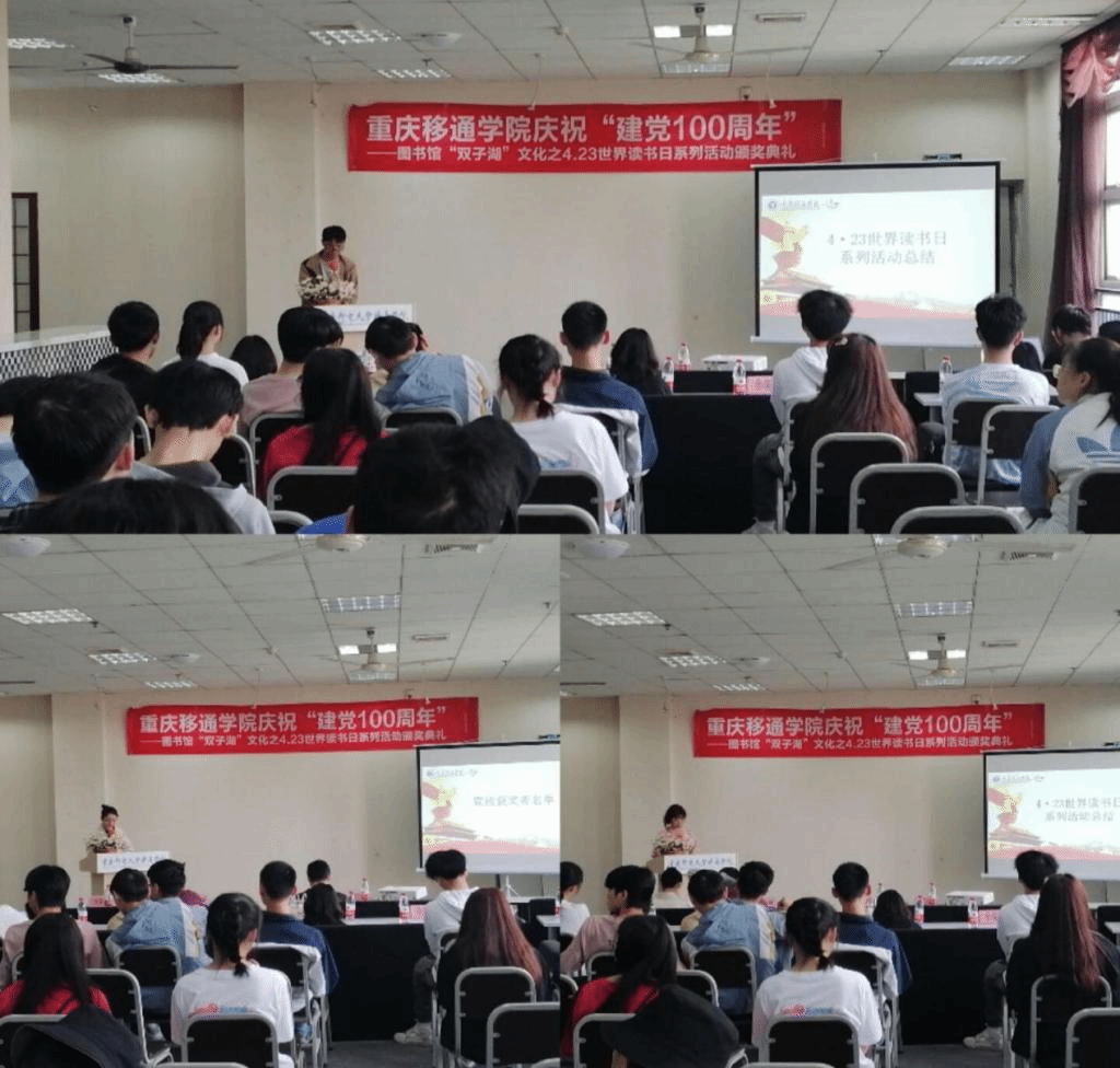 获奖是愉悦的,自豪的,每位参与者的努力和奋斗都是荣耀的,有才干的。在颁奖典礼上,进行了优秀作品观摩,播放了此次朗诵大赛一等奖作品《歌颂党的历史》、配音比赛一等奖作品《金陵十三钗》片段。赢得了阵阵的掌声。知识竞赛一等奖获得者瞿俊涵同学作为获奖代表发言,他提到今年图书馆的4.23主题活动子活动内容丰富,主题鲜明,富有吸引力。特别是以庆祝建党100周年为契机,向广大的青年大学生开展以学习党史为主题的竞赛类活动,让广大的读者知党史,明方向,有更加明确的学习目标和拼搏的斗志。这也切合学校“四位一体”人才培养模式,实现与学校的“完满教育”有机结合,培养新时代的完满人。