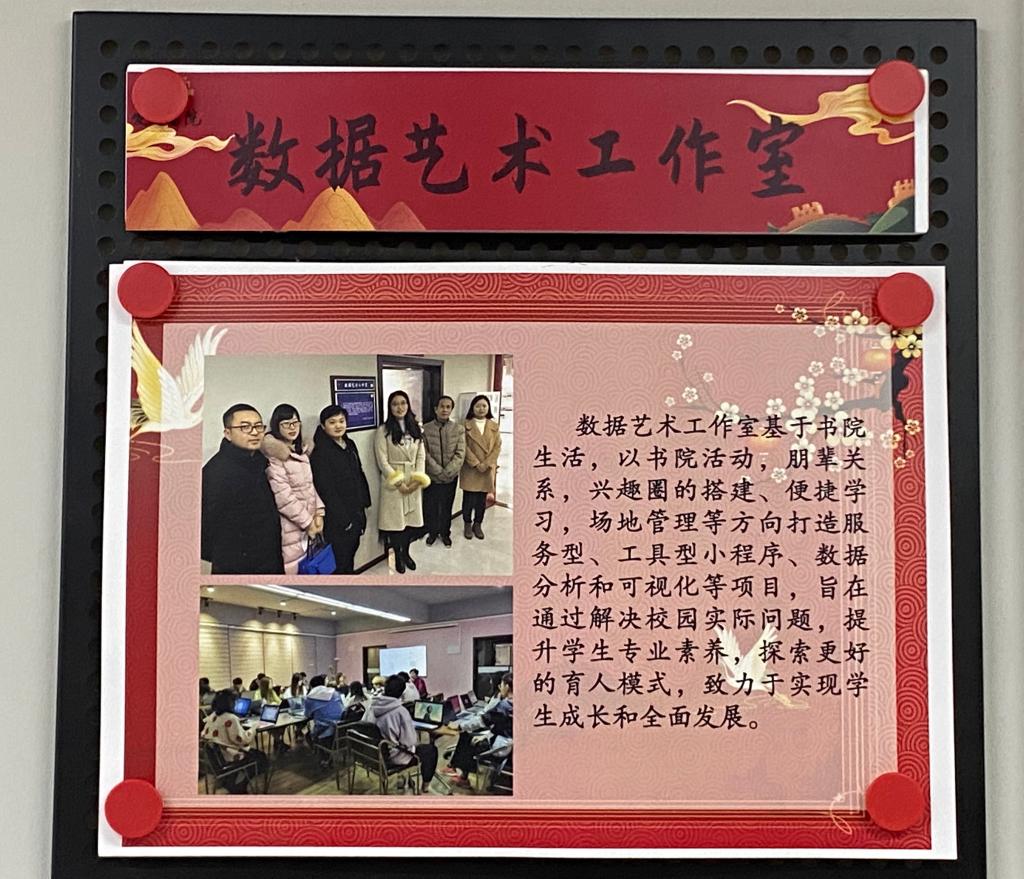 育人为本,双翼齐飞。数据艺术工作室主要基于书院生活,以书院功能室管理数字化建设为初衷,开发校内服务型、便捷型、工具型小程序,实现数据分析和可视化,旨在通过解决校园实际问题,提升学生专业素养,探索优化育人模式,实现学生成长和文化共建的双向发展。