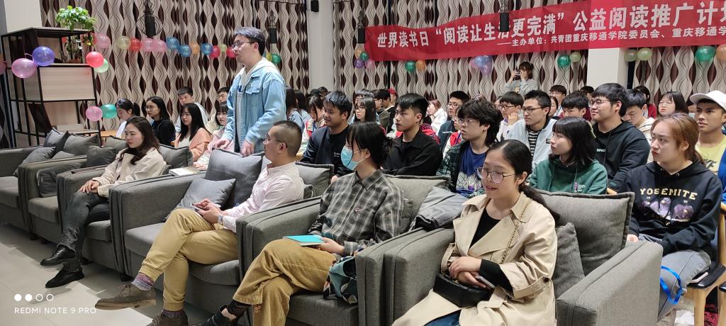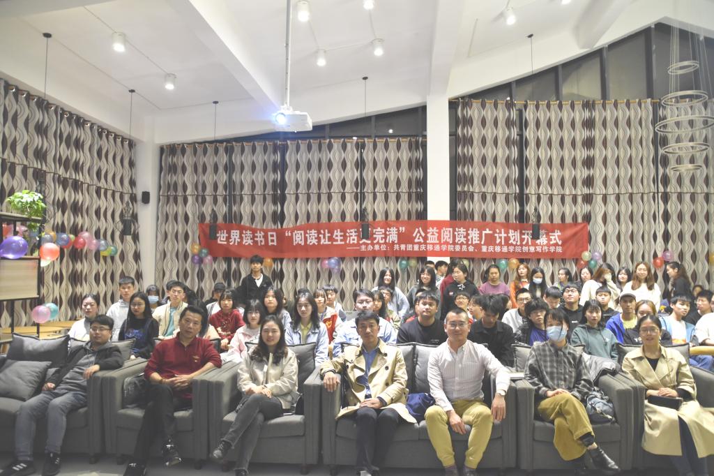 4月15日晚7点到9点,在世界读书日到来前夕,由共青团重庆移通学院委员会、重庆移通学院创意写作学院联合开展的“阅读让生活更完满”公益阅读推广计划开幕式在天渠书院举行,校团委老师吴静老师、重庆移通学院“阅读让生活更完满”公益阅读推广计划活动策划人、创意写作学院方刚老师、王恒绩老师、吴霞霞老师、张伟老师以及重庆对外经贸学院文学与创意传播学院写作与文艺理论教研室主任吴岳笙老师出席了本次活动,近百位来自重庆移通学院的学生和重庆对外经贸学院文学与创意传播学院2019级国学班与卓越班的优秀学生参加了这次开幕式活动。