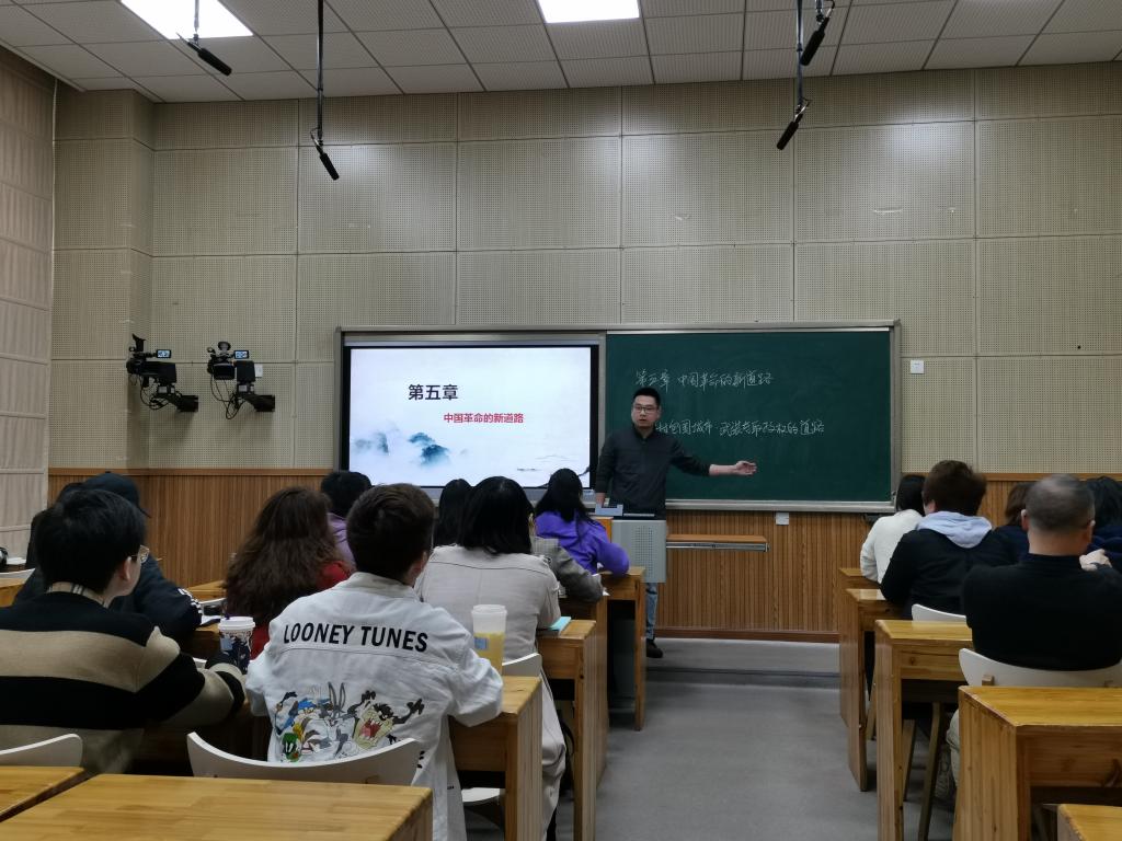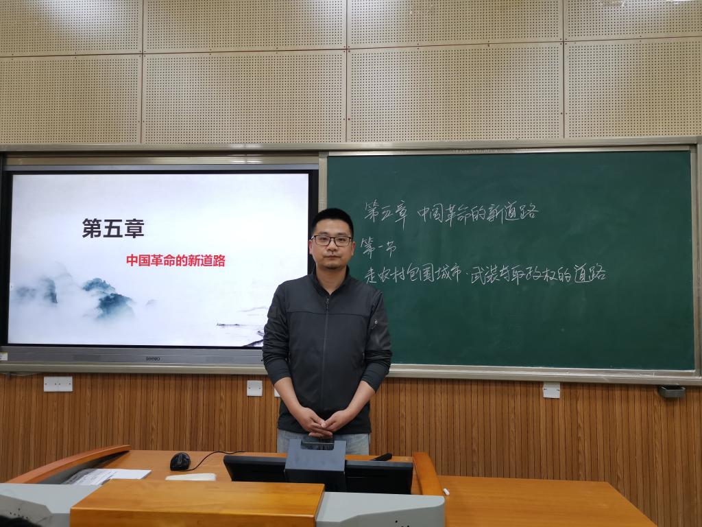 李老师此次分享的主题是《中国近现代史纲要》第五章“中国革命的新道路”中的第一节“走农村包围城市、武装夺取政权的道路”相关内容。李老师首先通过欣赏歌曲《请茶歌》抛出“毛委员为什么会上井冈山?”“上井冈山做了什么?”两个问题导入本堂课的讲授。在授课中,李老师主要围绕“对中国革命新道路的探索”“反‘围剿’战争与土地革命”两个方面进行讲解。在“对中国革命新道路的探索”讲解上,李老师比较详细地回顾了中国共产党是怎样在国民大革命失败后思考和实践革命新道路的相关历史,通过史论结合,分析了中国革命道路理论的形成过程。他谈到:从国民大革命到井冈山革命时期再到开辟赣南闽西根据地时期,中国革命新道路理论经历了从萌芽酝酿到开始产生再到初步形成的三个阶段。重点介绍了以毛泽东为代表的中国共产党人对革命新道路的相关实践和理论探索,让大家能够比较全面地融入到当时的革命环境和站在革命者的角度,理解中国共产党为什么会选择“走农村包围城市、武装夺取政权的道路”。在“反‘围剿’战争与土地革命”讲解上,李老师既阐明了在斗争中中国共产党为什么能取得前四次“反围剿”胜利的原因,又埋下伏笔,采用提问的方式,引导大家思考为什么农民群众会积极支持中国共产党革命,在问题的推动下,课程内容逐步深入,让人在不知不觉中了解毛泽东为代表的中国共产党人怎样为了农民的利益实行土地革命,把握土地革命的重要性,掌握了这些看似枯燥的知识。李老师教学思路清晰,语调抑扬顿挫,教态端庄大方,教学方法灵活多样,教学内容重难点突出,特别善于引导式教学,让在座各位老师受益颇丰。
