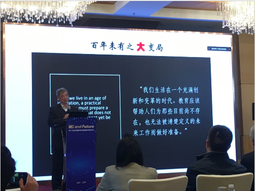 论坛的第二大环节则是围绕“We and Future”主题和教育部颁布的新教学大纲展开研讨,论坛会上提到,我们生活在一个充满创新和变革的时代,教育应该帮助人们为那些目前尚不存在,也无法被清楚定义的未来而做好工作准备。未来的职业人才要求必须是,有知识,懂专业,懂外语,有技术,有技能的综合型人才。教育部职业院校外语类专业教学指导主任刁建东教授、上外外国语大学梅德明教授等,分别做出相关指导工作。