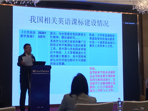 论坛会也展示了新标准高职公共英语系列教材(第三版)以及“We and Future”新一代外语智慧教学平台的应用与展望。论坛期间,陈西楠老师也认真聆听了各项报告,并与专家和同行教师就英语教学质量提升进行了深入探讨和交流,专家们对我院的中外合作办学模式与雅思英语教学工作给予了充分的肯定和高度赞扬。