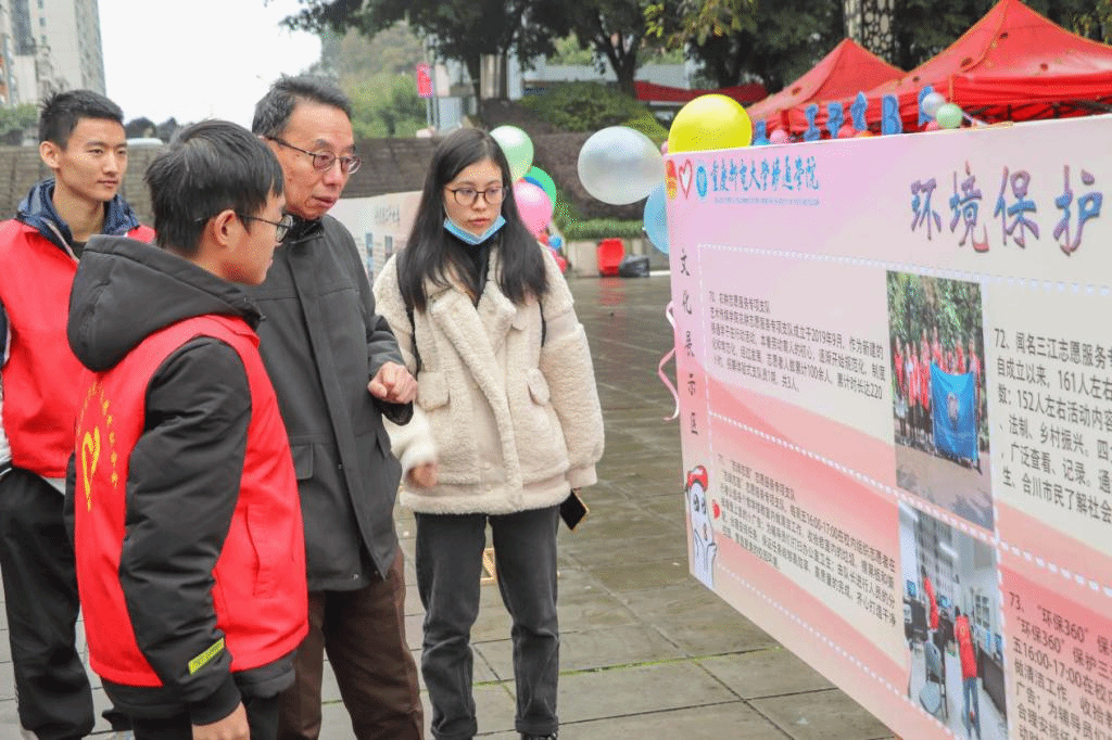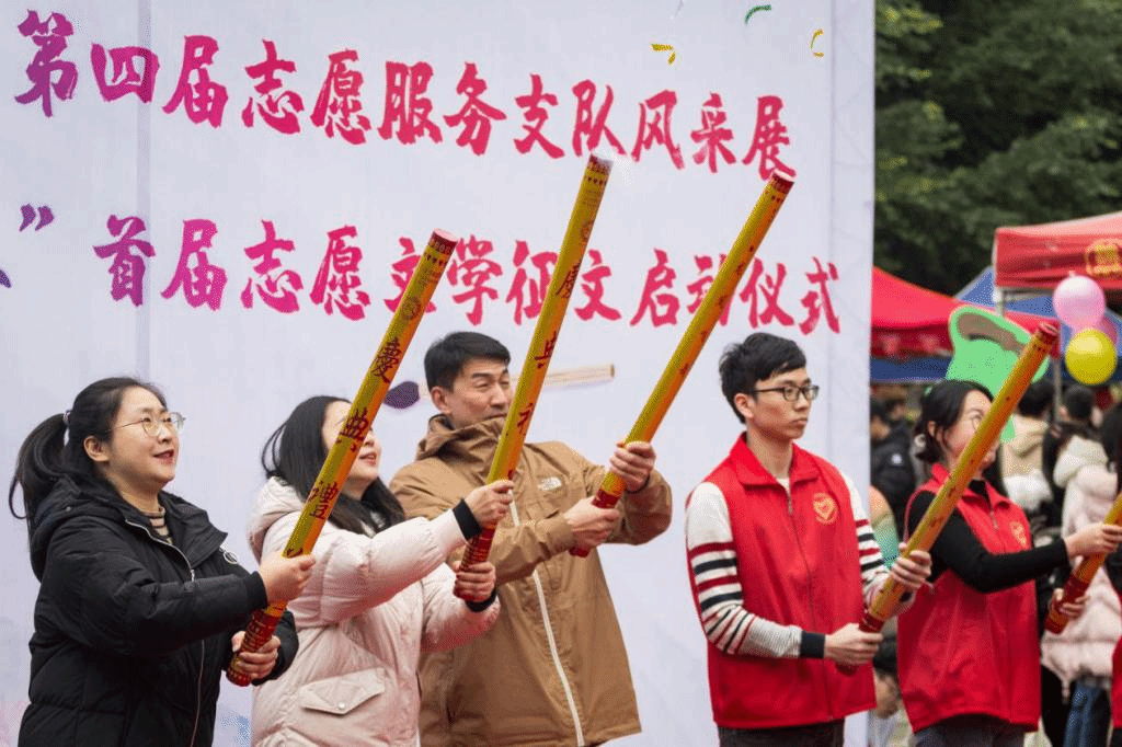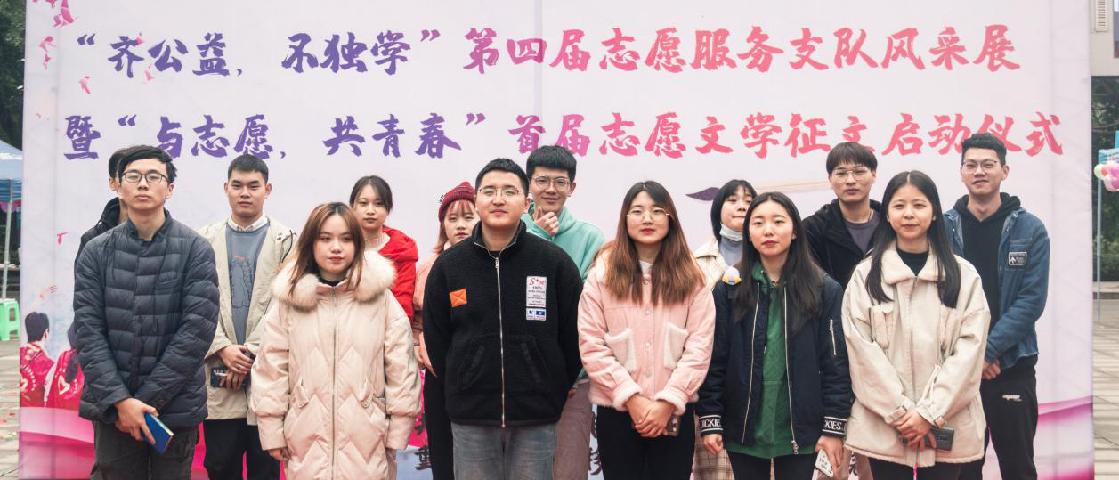 11月25日,由校团委联合创意写作学院主办的“齐公益·不‘独’学”第四届志愿服务支队风采展暨“与志愿·共青春”首届志愿文学征文活动启动仪式在黄桷树广场成功开展。校院两级志愿服务指导老师、各学院志愿者代表、征文活动参与人员代表、各志愿服务支队负责人,共计2000余人参加本次活动。